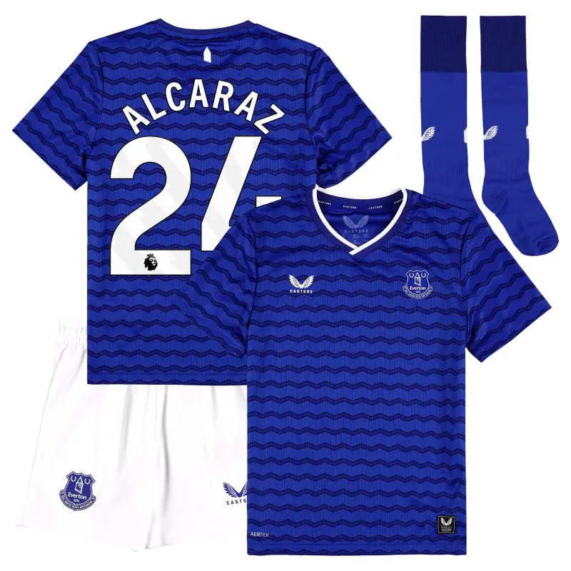 Everton Castore Home Replica Shirt 2025-26 – Kids With Alcaraz 24 Printing