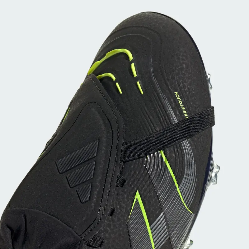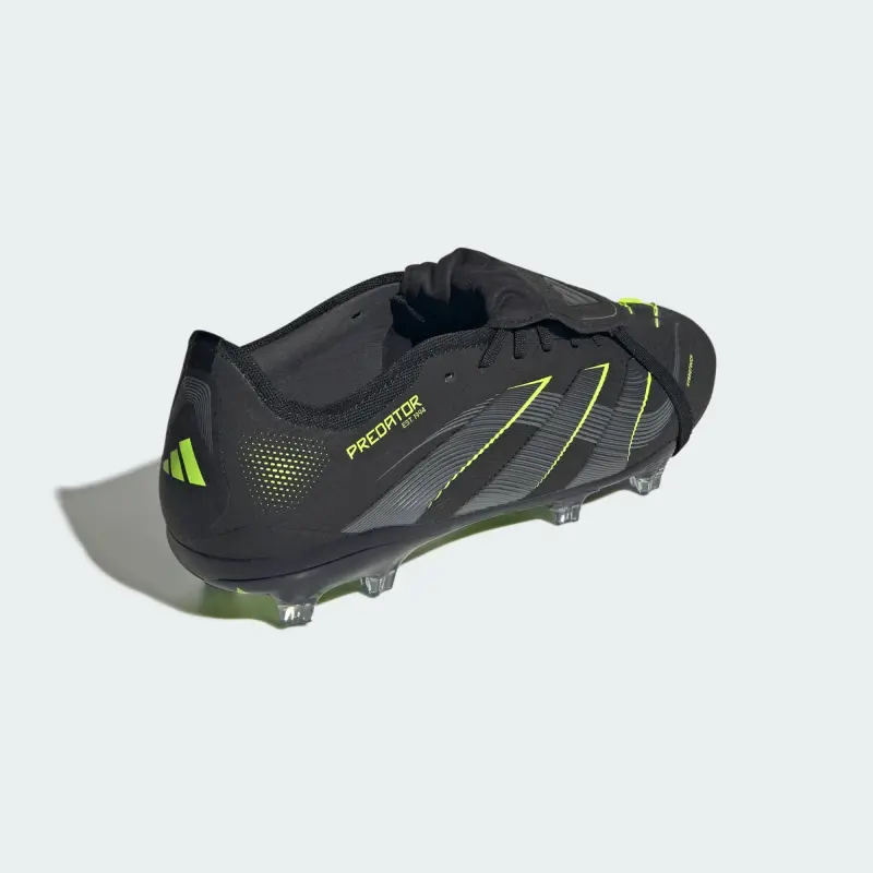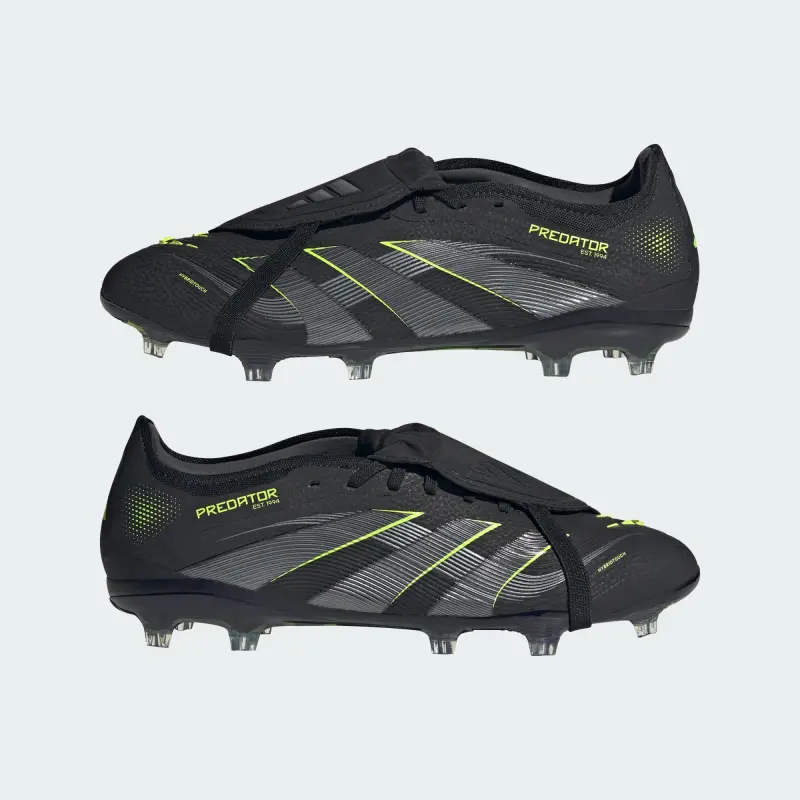 Discover the difference between aiming to score and knowing you will with adidas Predator cleats that are crafted for goals. These Pro soccer cleats have a flexible HybridTouch upper with a fold-over tongue and grippy rubber Strikeskin fins that help control every strike of the ball. Turn them over and you’ll find a full-length Controlplate outsole designed to keep you stable on dry grass.