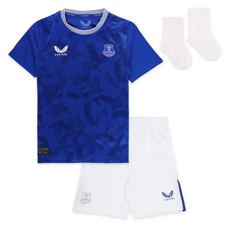 Set up the next generation of Blues for greatness with the official Everton Home baby kit for 2024-25. Featuring shirt, shorts and socks that mirror the adult kit, the tiniest Blues in the family will be proud to wear this wherever they are, sporting the team crest and iconic Everton colours.