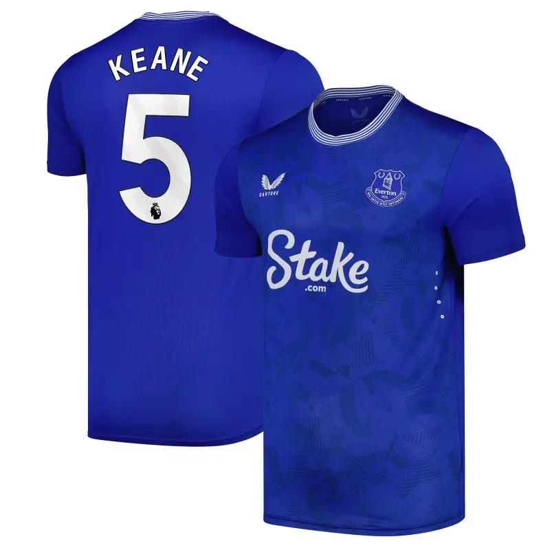 Stand with the Blues through the 2024-25 season as a proud Everton supporter with the official kit from Castore. The home kit draws inspiration from the club’s historic kits, one of the most recognizable designs English in football, while upholding the team’s traditional aesthetic. The Pro shirt is modelled on what the players themselves wear, offering superb comfort and performance on the pitch. The tonal print on the front body deconstructs Everton’s original shield crest and incorporates intertwined lettering from the 1920s and following decades, drawing on Everton’s proud history.