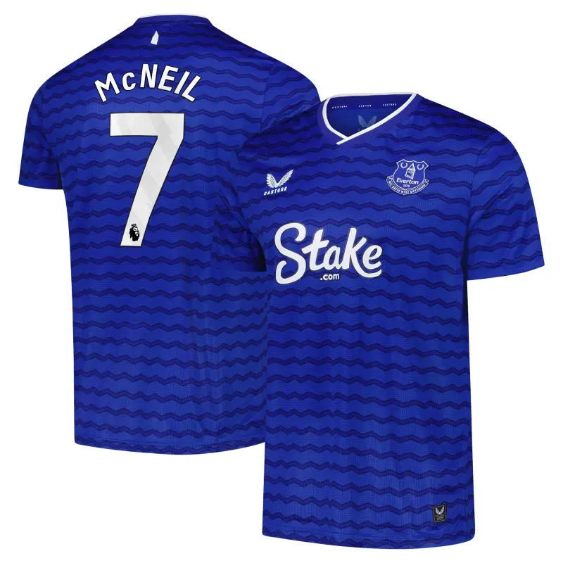 Kit yourself out with the ultimate Everton apparel through the 2025-26 season as a proud Blues supporter with the official kit from Castore. The Home Pro shirt is modelled on what the players themselves wear, offering superb comfort and performance on the pitch. The shirt incorporates Castore’s AerTek moisture-wicking material to ensure you stay dry and comfortable when things get frenetic during training and matches. The all-over pattern uses Everton’s classic colours to bring a sense of movement, and it features a 3D team crest on the chest and the Everton tower on the back of the neck.