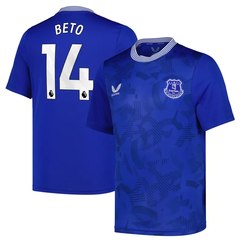 Stand with the Blues through the 2024-25 season as a proud Everton supporter with the official kit from Castore. The home kit draws inspiration from the club’s historic kits, one of the most recognizable designs English in football, while upholding the team’s traditional aesthetic. The Home shirt is ideal for wearing on or off the pitch, giving great comfort without compromising on the classic team details. The tonal print on the front body deconstructs Everton’s original shield crest and incorporates intertwined lettering from the 1920s and following decades, drawing on Everton’s proud history.
