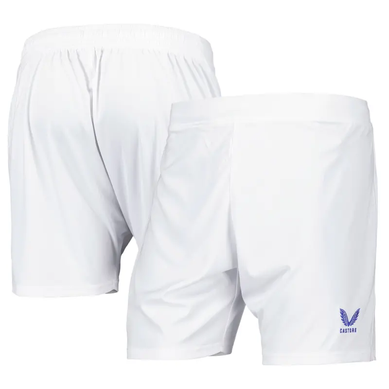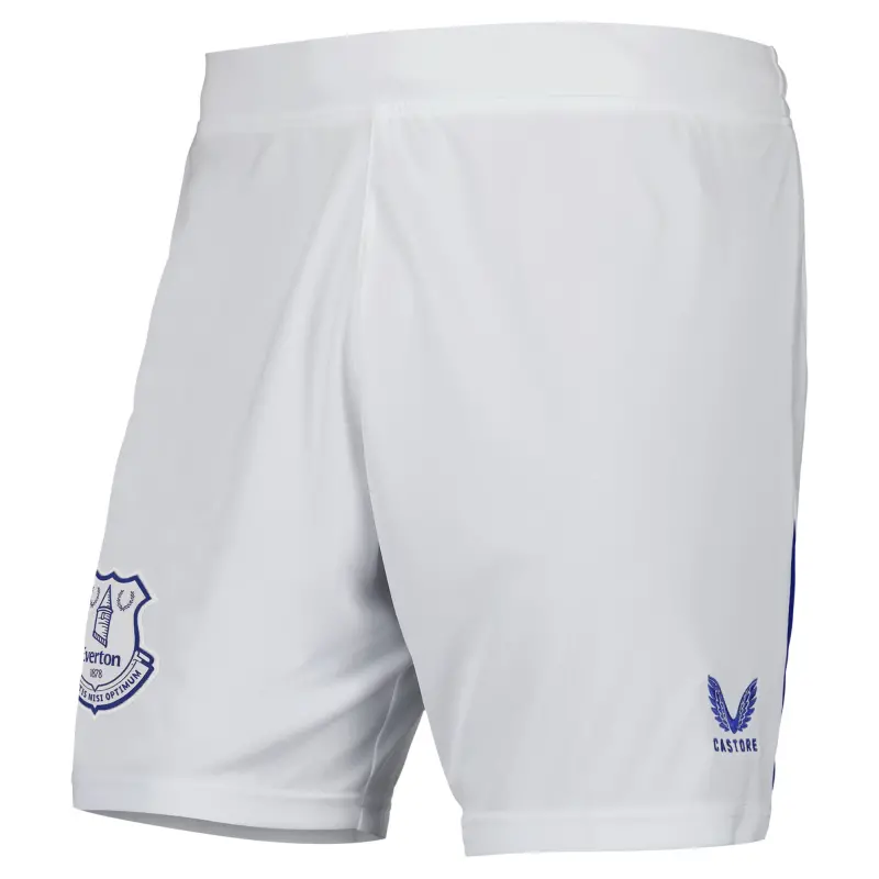- Everton team crest and Castore logo on thighs