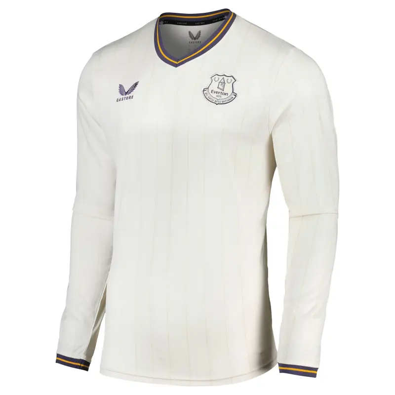 Step onto the pitch in unbeatable Everton fashion with this season’s official Third Kit from Castore, drawing inspiration from Major League Baseball’s historic associations with the club. The shirt’s design is inspired by the 100th anniversary of the exhibition match between the Chicago White Sox and the New York Giants held at Goodison Park and incorporates classic baseball colours in the design. The comfortable fit is just at home as everyday wear as when you step out on the pitch for your own game while the ever-present Everton crest on the chest shows your Blues pride every time you step out for a game.
