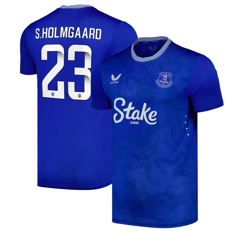 Stand with the Blues through the 2024-25 season as a proud Everton supporter with the official kit from Castore. The home kit draws inspiration from the club’s historic kits, one of the most recognizable designs English in football, while upholding the team’s traditional aesthetic. The Pro shirt is modelled on what the players themselves wear, offering superb comfort and performance on the pitch. The tonal print on the front body deconstructs Everton’s original shield crest and incorporates intertwined lettering from the 1920s and following decades, drawing on Everton’s proud history.
