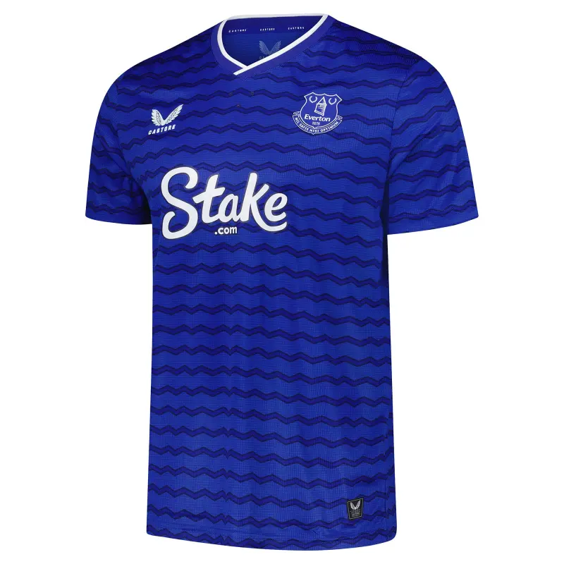 Kit yourself out with the ultimate Everton apparel through the 2025-26 season as a proud Blues supporter with the official kit from Castore. The Home Pro shirt is modelled on what the players themselves wear, offering superb comfort and performance on the pitch. The shirt incorporates Castore’s AerTek moisture-wicking material to ensure you stay dry and comfortable when things get frenetic during training and matches. The all-over pattern uses Everton’s classic colours to bring a sense of movement, and it features a 3D team crest on the chest and the Everton tower on the back of the neck.