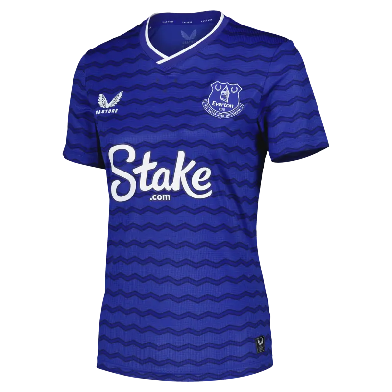 Kit yourself out with the ultimate Everton apparel through the 2025-26 season as a proud Blues supporter with the official kit from Castore. The Home Pro shirt is modelled on what the players themselves wear, offering superb comfort and performance on the pitch. The shirt incorporates Castore’s AerTek moisture-wicking material to ensure you stay dry and comfortable when things get frenetic during training and matches. The all-over pattern uses Everton’s classic colours to bring a sense of movement, and it features a 3D team crest on the chest and the Everton tower on the back of the neck.