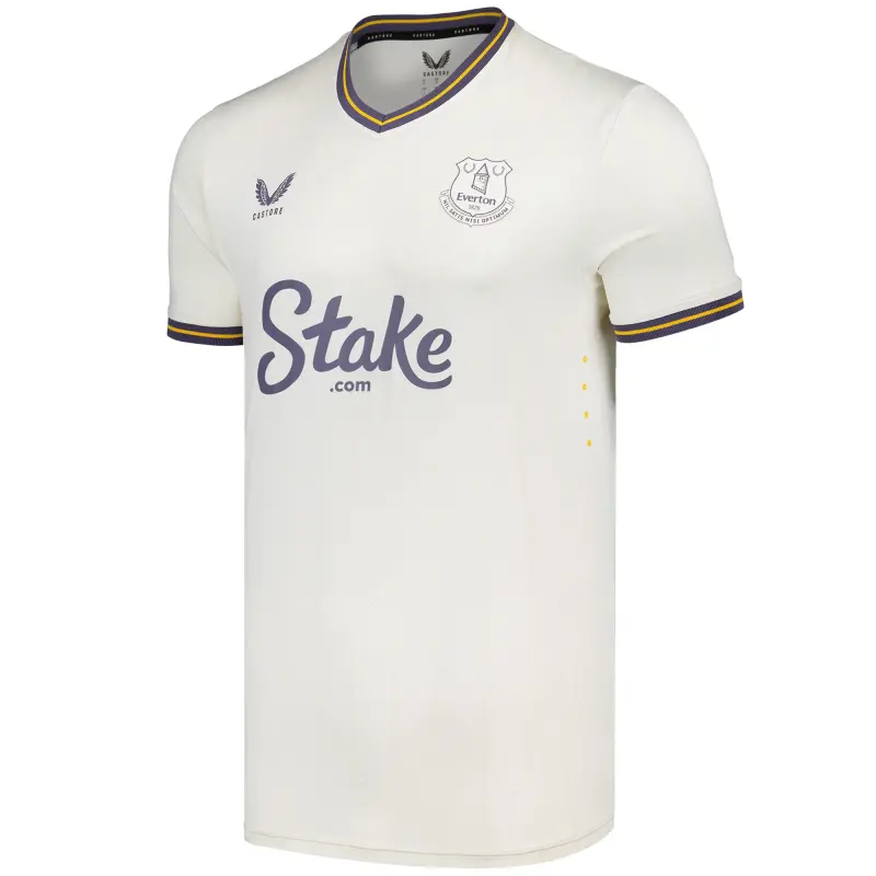 Step onto the pitch in unbeatable Everton fashion with this season’s official Third Kit from Castore, drawing inspiration from Major League Baseball’s historic associations with the club. The Pro Shirt is the ultimate piece of on-pitch kit, incorporating laser-cut holes in front of the arms for added ventilation and ribbed tipping on the V-neck collar and cuffs. The shirt’s design is inspired by the 100th anniversary of the exhibition match between the Chicago White Sox and the New York Giants held at Goodison Park and incorporates classic baseball colours in the design. The ever-present Everton crest on the chest shows your Blues pride every time you step out for a game.