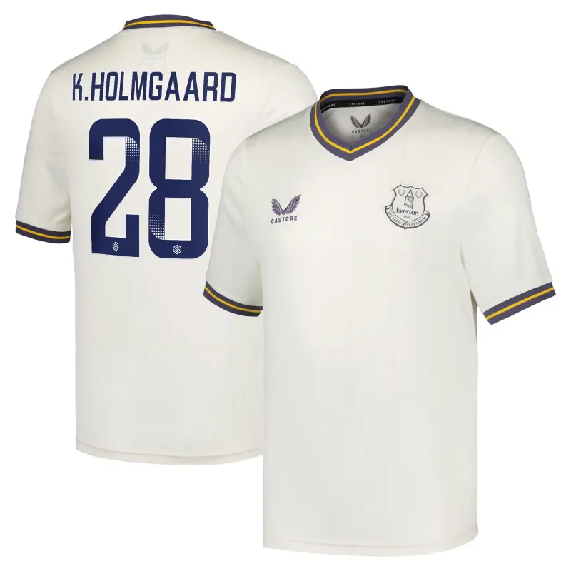 Step onto the pitch in unbeatable Everton fashion with this season’s official Third Kit from Castore, drawing inspiration from Major League Baseball’s historic associations with the club. The shirt’s design is inspired by the 100th anniversary of the exhibition match between the Chicago White Sox and the New York Giants held at Goodison Park and incorporates classic baseball colours in the design. The comfortable fit is just at home as everyday wear as when you step out on the pitch for your own game while the ever-present Everton crest on the chest shows your Blues pride every time you step out for a game.