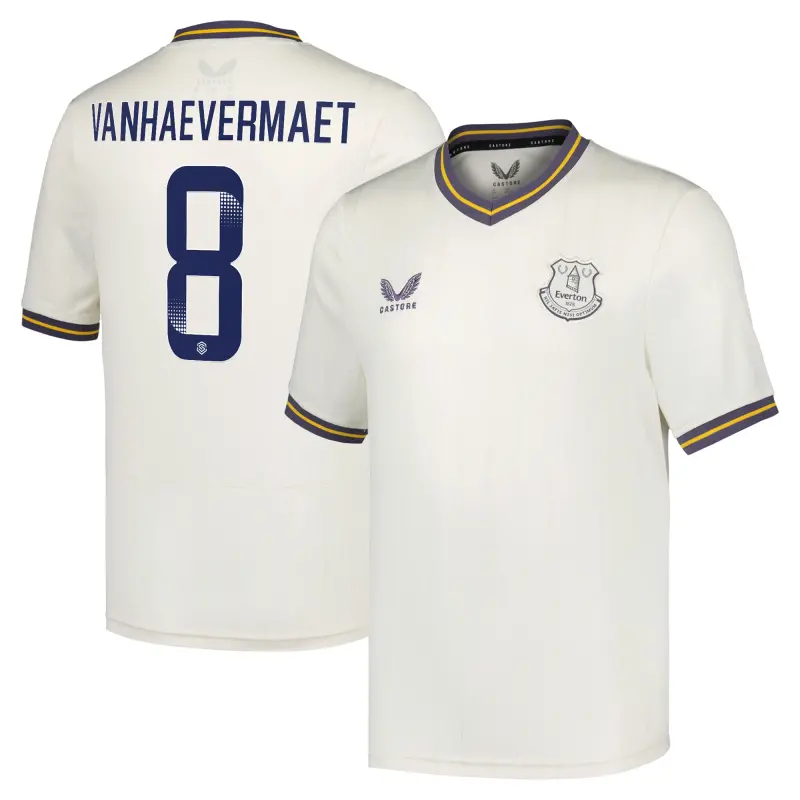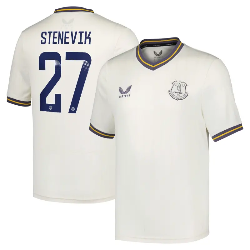 Step onto the pitch in unbeatable Everton fashion with this season’s official Third Kit from Castore, drawing inspiration from Major League Baseball’s historic associations with the club. The shirt’s design is inspired by the 100th anniversary of the exhibition match between the Chicago White Sox and the New York Giants held at Goodison Park and incorporates classic baseball colours in the design. The comfortable fit is just at home as everyday wear as when you step out on the pitch for your own game while the ever-present Everton crest on the chest shows your Blues pride every time you step out for a game.