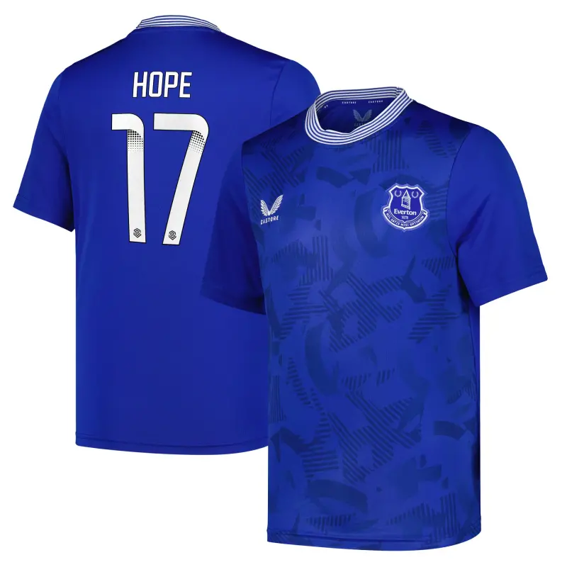 Stand with the Blues through the 2024-25 season as a proud Everton supporter with the official kit from Castore. The home kit draws inspiration from the club’s historic kits, one of the most recognizable designs English in football, while upholding the team’s traditional aesthetic. The Home shirt is ideal for wearing on or off the pitch, giving great comfort without compromising on the classic team details. The tonal print on the front body deconstructs Everton’s original shield crest and incorporates intertwined lettering from the 1920s and following decades, drawing on Everton’s proud history.