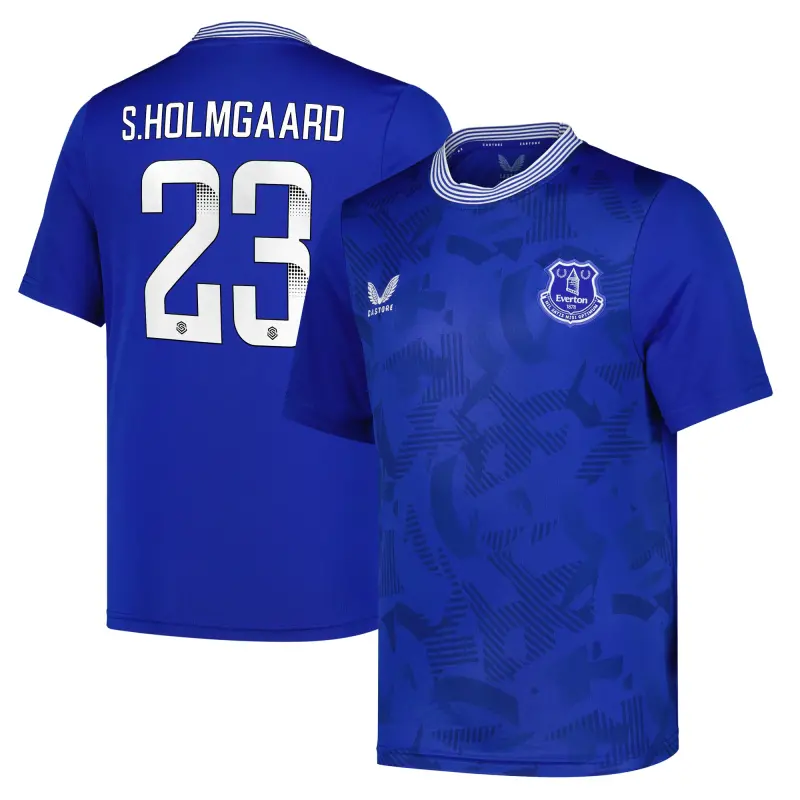 Stand with the Blues through the 2024-25 season as a proud Everton supporter with the official kit from Castore. The home kit draws inspiration from the club’s historic kits, one of the most recognizable designs English in football, while upholding the team’s traditional aesthetic. The Home shirt is ideal for wearing on or off the pitch, giving great comfort without compromising on the classic team details. The tonal print on the front body deconstructs Everton’s original shield crest and incorporates intertwined lettering from the 1920s and following decades, drawing on Everton’s proud history.