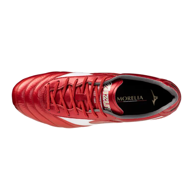 This MORELIA II ELITE model, updated for the 40th anniversary of the MORELIA brand, offers an exceptional fit with authentic kangaroo leather. It also features stronger micro taffeta material plus a suede-lined opening for enhanced comfort and durability. Designed for all surfaces, including artificial and natural grass, it offers football players a flexible, barefoot feel at a light weight.